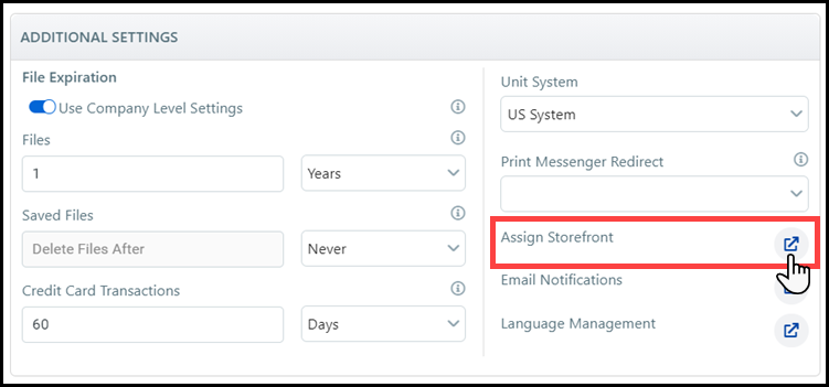where you can assign the storefront to a company.