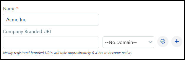 Company Branded URL: Enter a name for your URL in the Company Branded URL field. Then choose a domain from the No Domain drop-down list.