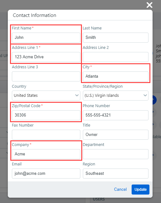 2 Complete the required fields.