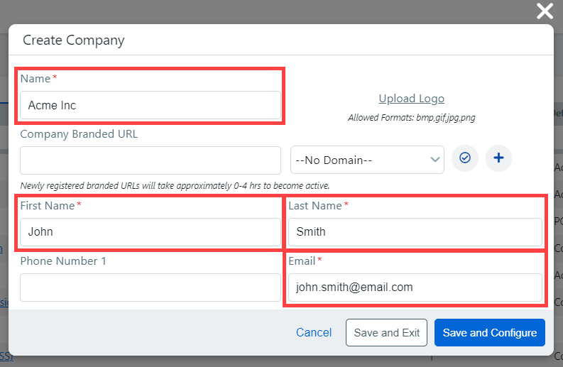 3 Click Save and Configure to move onto the Edit Company page.
