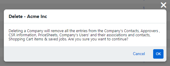 Deleting a company will remove information associated with that company, and it cannot be recovered once Deleted.