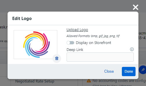 If you have multiple companies connected to a single storefront, then you can change the StoreFront logo for different user groups.