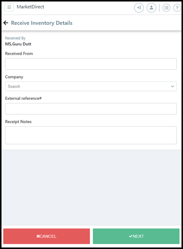 ● Received By: (Auto-populated) By default the inventory will be received by the administrator who is currently logged into the system.