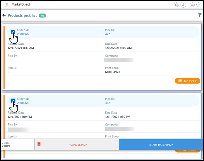 Pick an order using Mobile FulfillmentMobile Fulfillment gives administrators the ability to manage and track inventory using their mobile phone or tablet. This allows the administrator to access their MarketDirect Fulfillment site and scan barcodes using the same device.