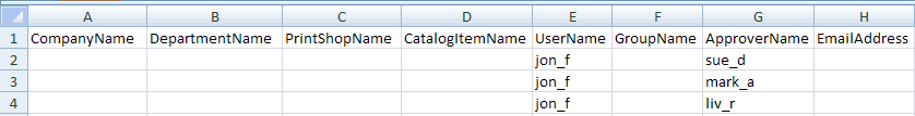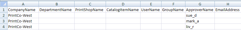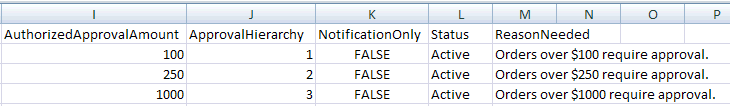 This method is a potentially faster way to get the work done than the user interface (e.g., if you prefer to work with a large number of approval rules in CSV format). Using this method, you will download a template, populate it with your data, and then import it to MarketDirect StoreFront on the Import page. You can then manage the approvals on the Approvals page (accessible from the Manage Approval Settings link on the Administration Home page).