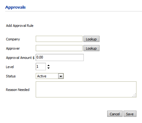 4 On the Add Approval Rule page, make changes (e.g., to the approval Level or Reason Needed).