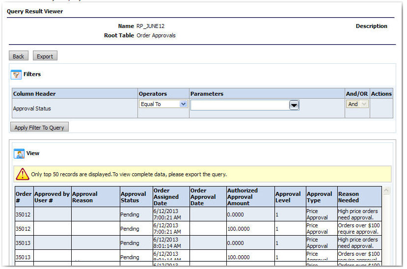 a Query on Approvals with the Dynamic Query ToolFor complete details on running queries with the Dynamic Query Tool, see Creating Query with the Dynamic Query Tool.