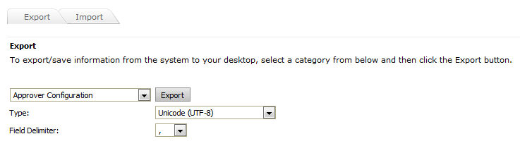 the Export tab, select Approver Configuration and then