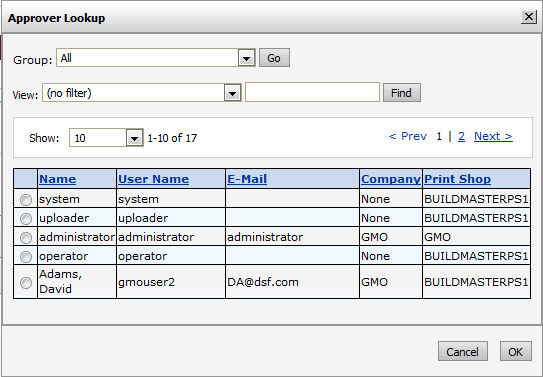 ● Approver: Click Lookup and select the approver from the list of users in the system.