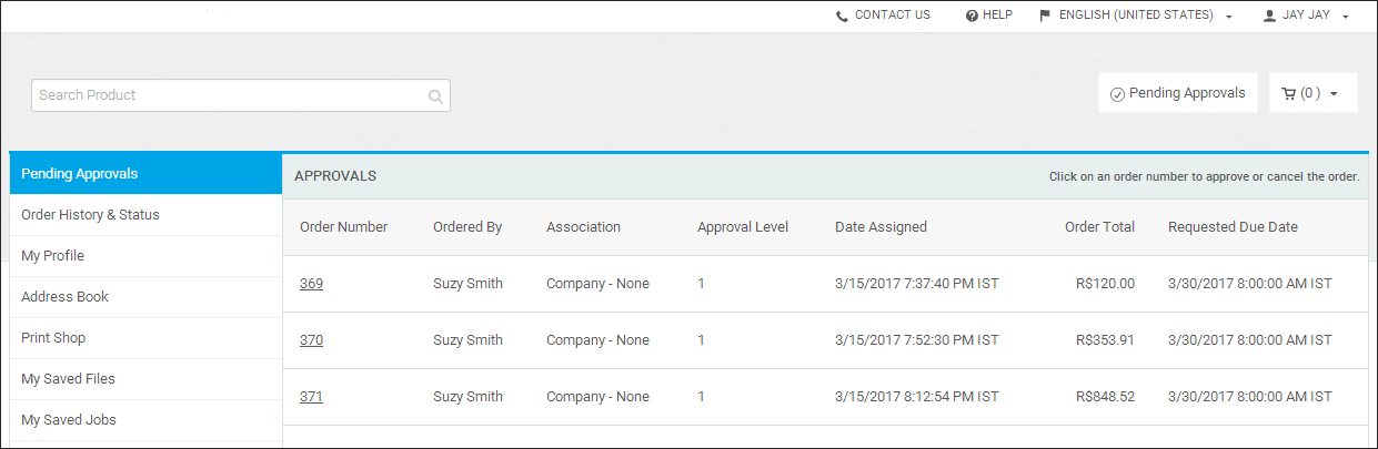 ● Print Shops: Approval is required for all orders placed by buyers (users) in a Print Shop.