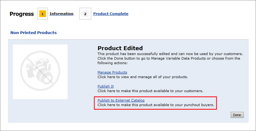 When buyers select a link to a matrix product or a kit product, they will be taken directly to the appropriate page to begin selecting options for the product. For products that require no configuration only quantity (e.g., non-printed products and static products without ticketing options, buyers will be taken directly to the product details page.