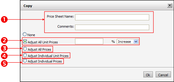 2         Global price editing: You can copy an existing price sheet and adjust the values globally for all or only selected priceable components by a certain percentage (increase or decrease).