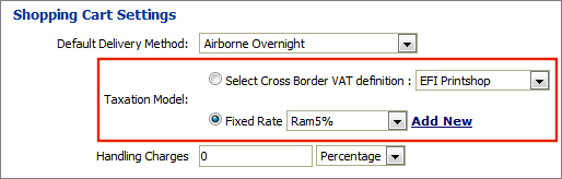 These settings will be available only if you are using the VAT taxation model. For more information on VAT taxation model in MarketDirect StoreFront, see VAT Taxation Model for Cross Border VAT Taxation.