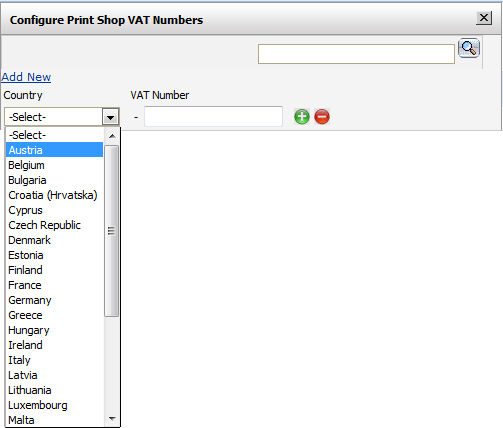 On the Configure Print Shop VAT Numbers dialog, click Add New.