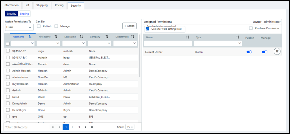 Enable or disable the Publish, Purchase, and/or Manage rights of Assigned user(s) and/or group(s) by using the appropriate toggles.