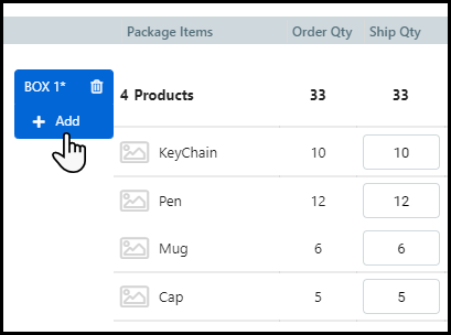 by entering the appropriate item quantity in the Ship