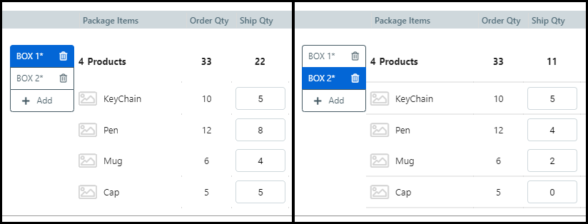 You can break up the order quantity of an item into different boxes
