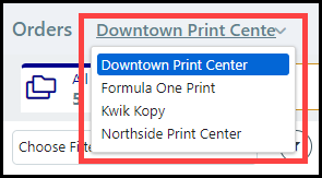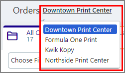1 On the Order View, choose your Print Shop from the Print Shop pull-down list.