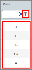 ● Numerical value data columns (e.g., ID, Order Qty, Total Pages, etc.) can be searched / filtered using operators. Any column with a filter can take value operators: