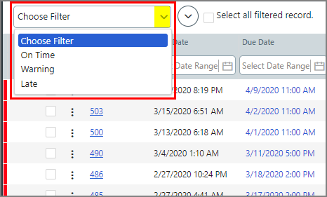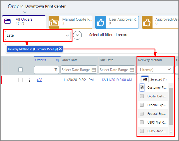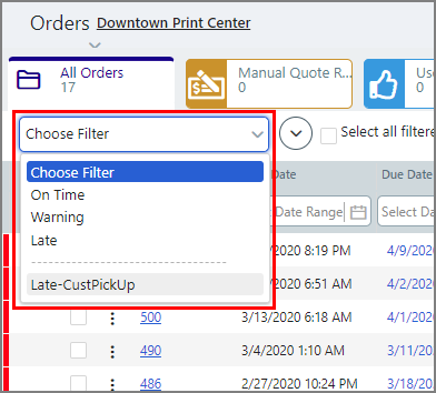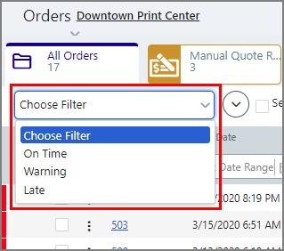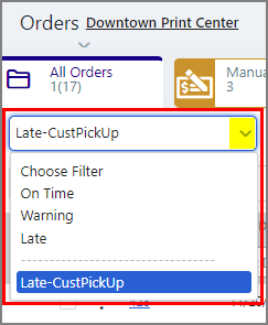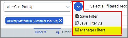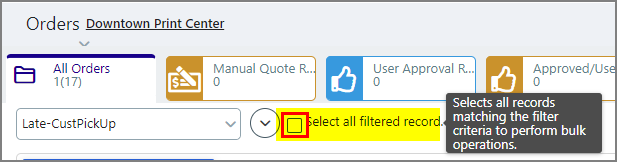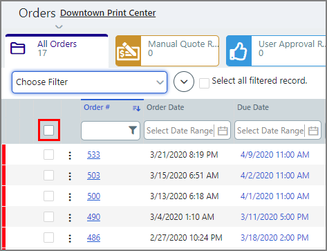 ● To select all orders in a global filter, select the filter from the Choose Filter pull-down list.