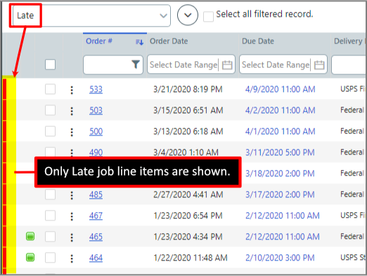 data filters to show only a subset of productsThe system's filtering feature enables sophisticated filtering operations to drill down and isolate only those items that are relevant for a particular user or use. You can use the built-in global filters and create custom filters tailored to your job management workflow(s).
