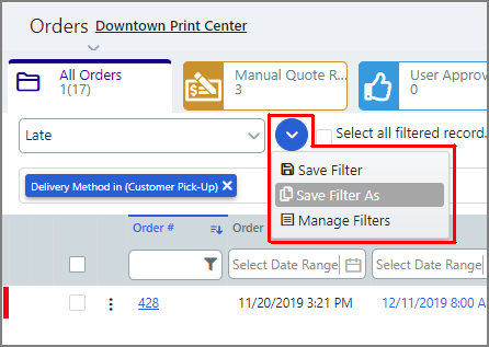 ● tools to save those sort and filter settings for later use and create as many custom filters and personalized views as needed for various order workflows