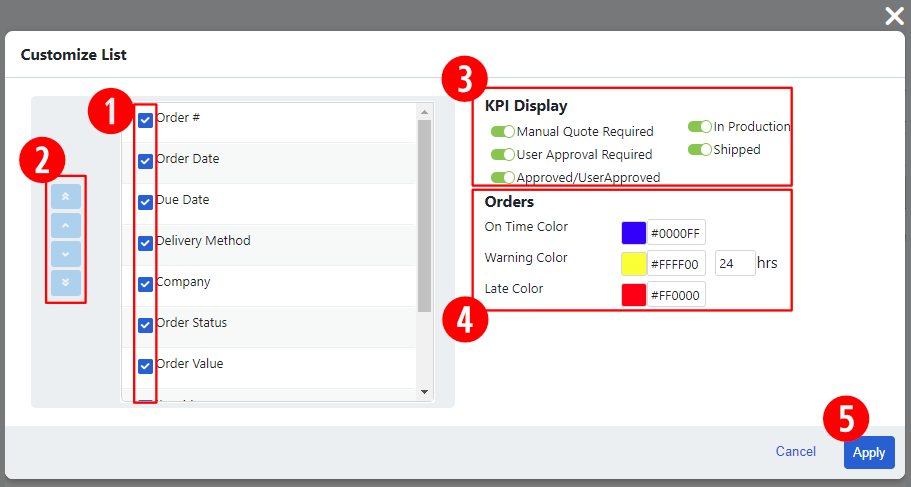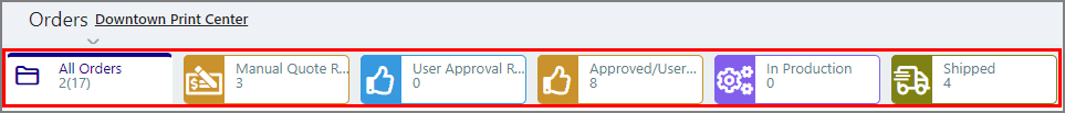 The KPI display bar lets you toggle quickly between seeing all orders and orders only in the selected KPI (key performance indicator) statuses. |