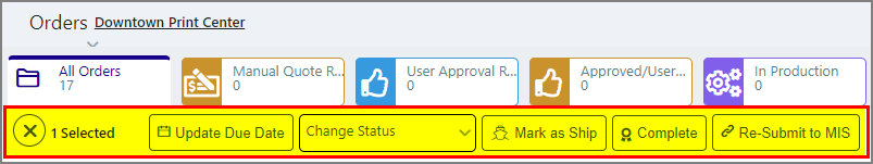 ● Complete: Change the status of the selected order(s) to Complete.