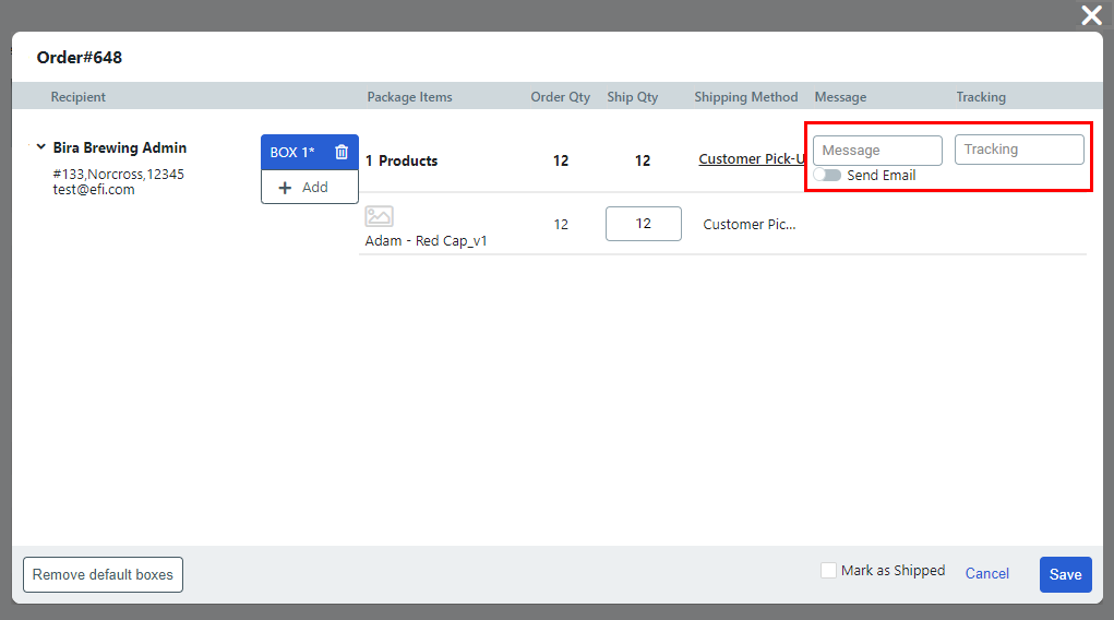 4 In the Mark as Ship window:
