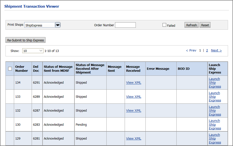 ● Print Shops: Select the Ship Express associated Print Shop with the order(s)you want to view.