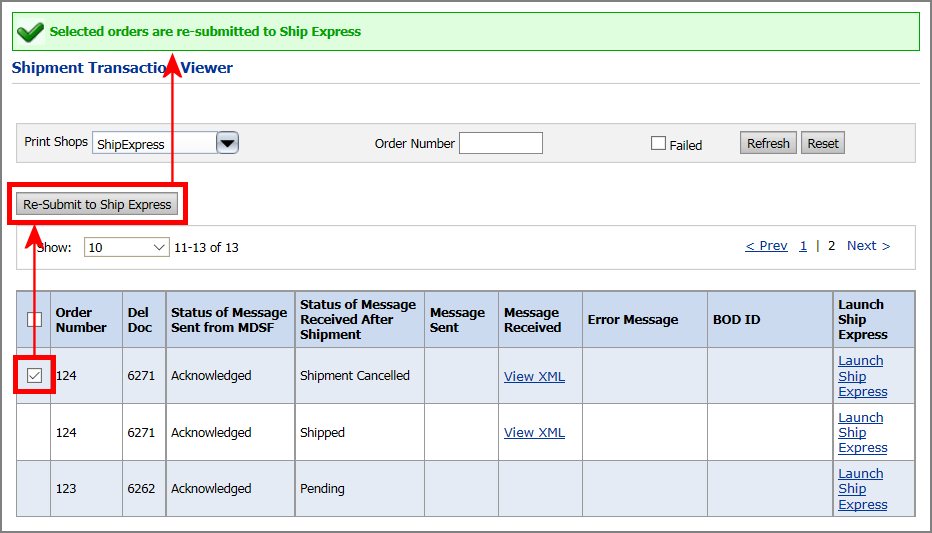 5 To resubmit an order (e.g., a canceled) order, select the order and then click Re-Sumbit to Ship Express.