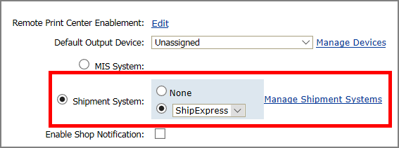 3 To associate a shipment system with the Print Shop, select Shipment System.