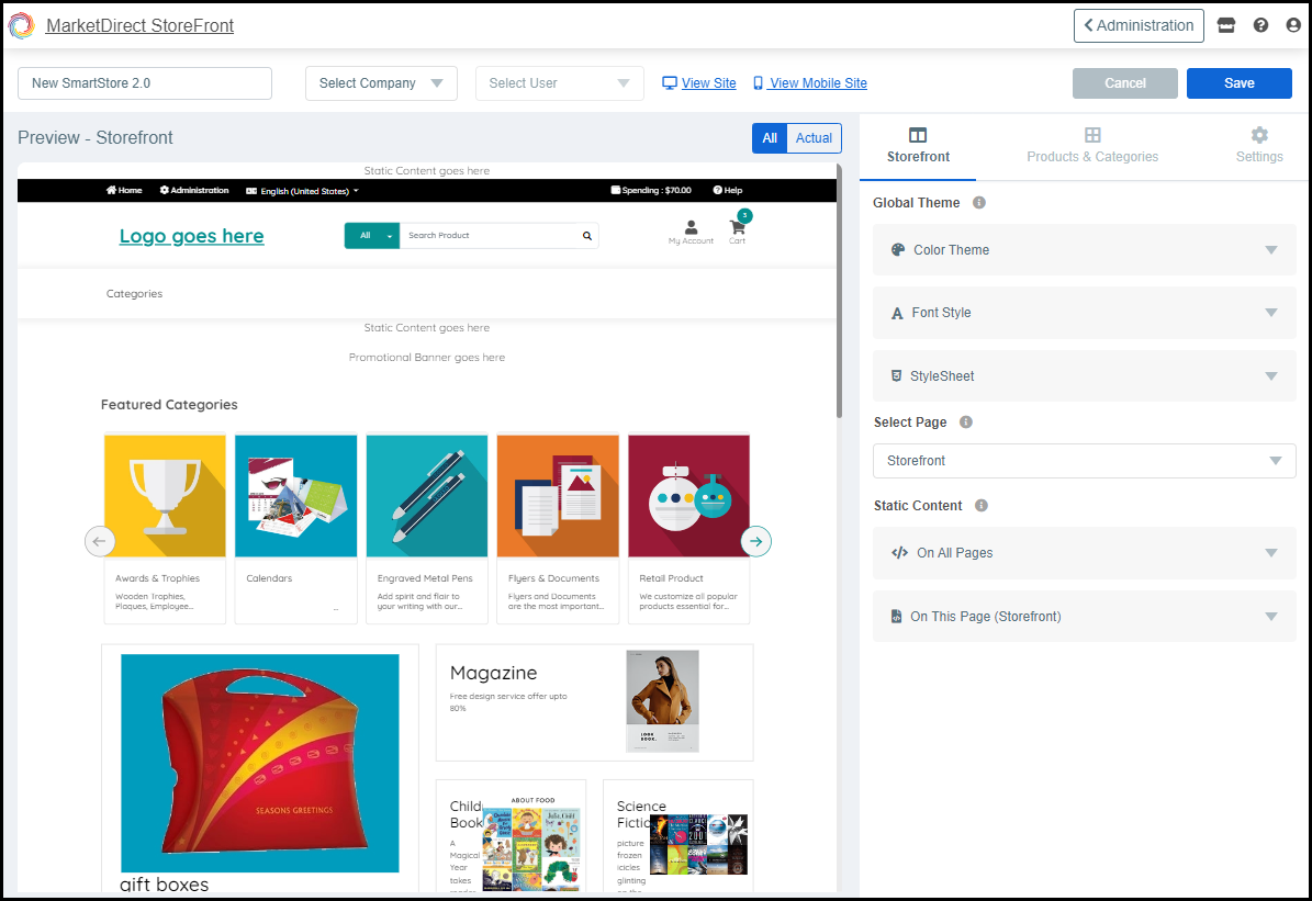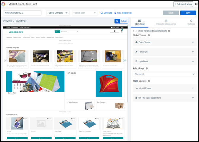 Test Company Branded Sites in MarketDirect StoreFront