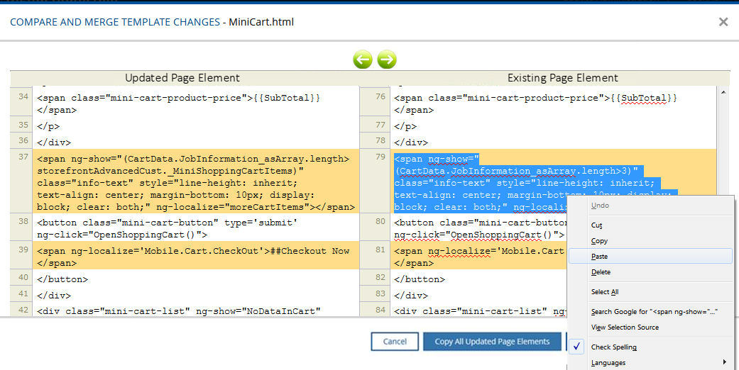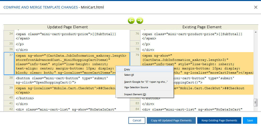 Compare and Merge Changes