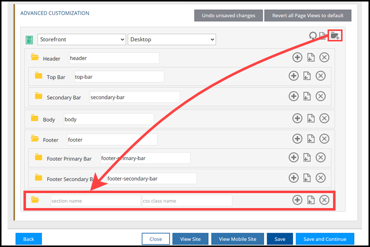 Page Sections, Sub-Sections, and HTML Page ElementsYou can add page sections and sub-sections to any SmartStore page.