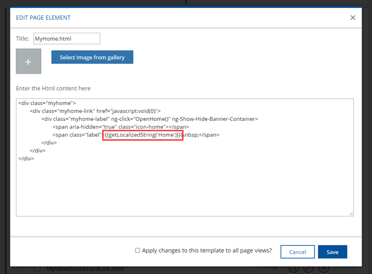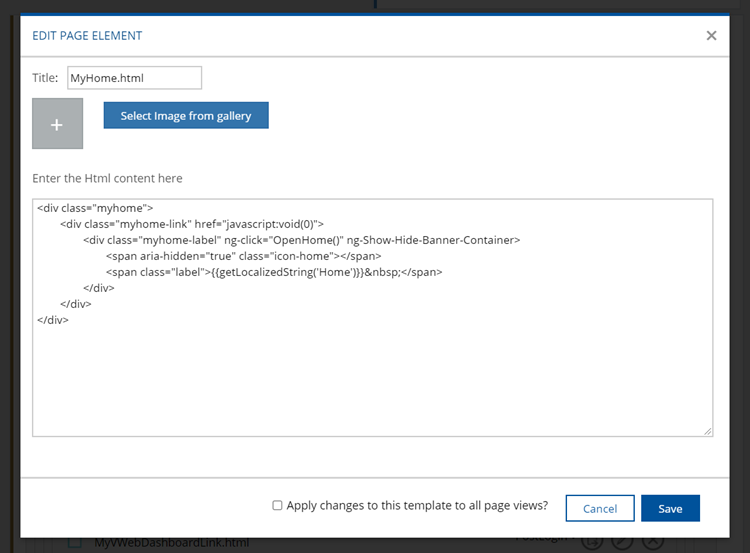 ● Enter a Title for the page element, with the .html extension appended to the title.