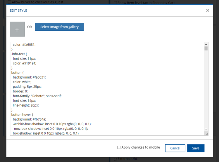 4 Select the Apply changes to mobile check-box to apply the edits to the mobile view of the storefront.