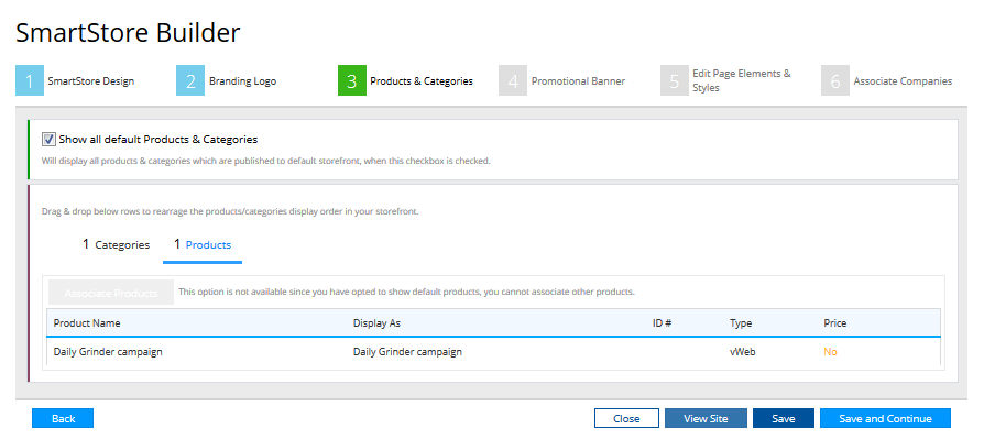 The title of existing SmartStores created before upgrading to MarketDirect StoreFront v. 7.4 will default to the name of the SmartStore.