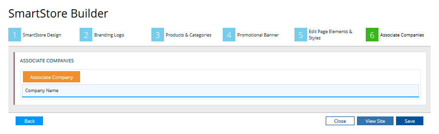 2 On the Associate Companies window, select the company(ies) to associate with the storefront.