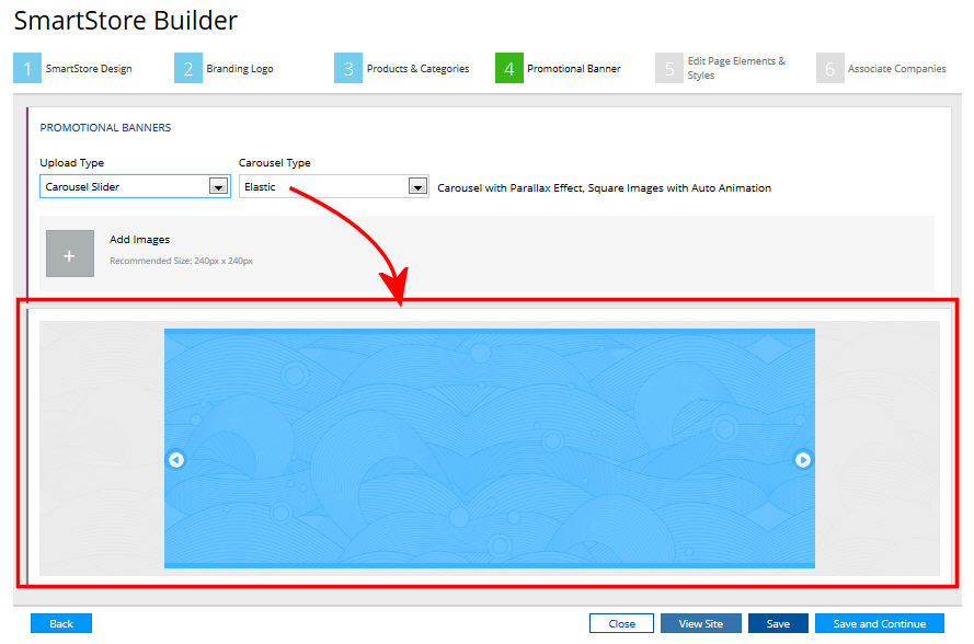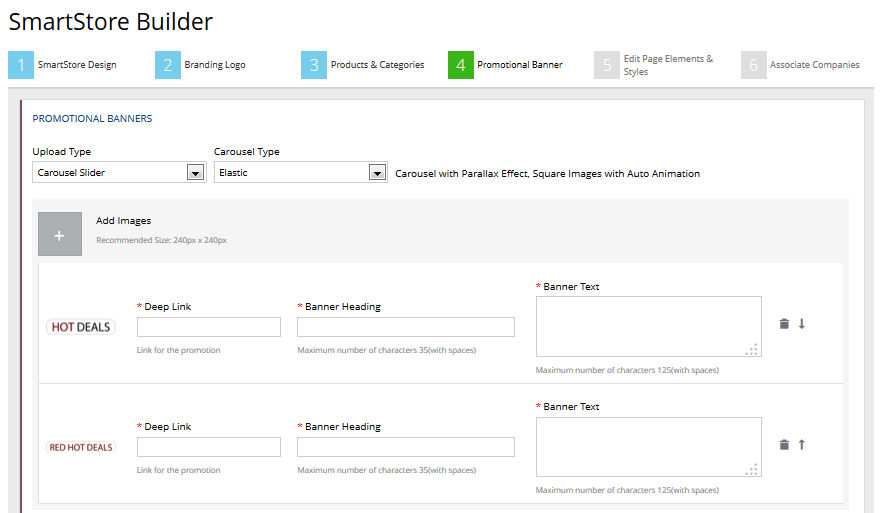 You can also click 4 Promotional Banner icon in the SmartStore Builder navigation menu.