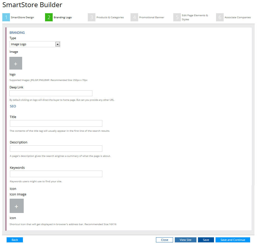 Branding Logo - Choose a Logo1 In the Branding section: From the Type pull-down list, select the type of logo to add to the storefront:
