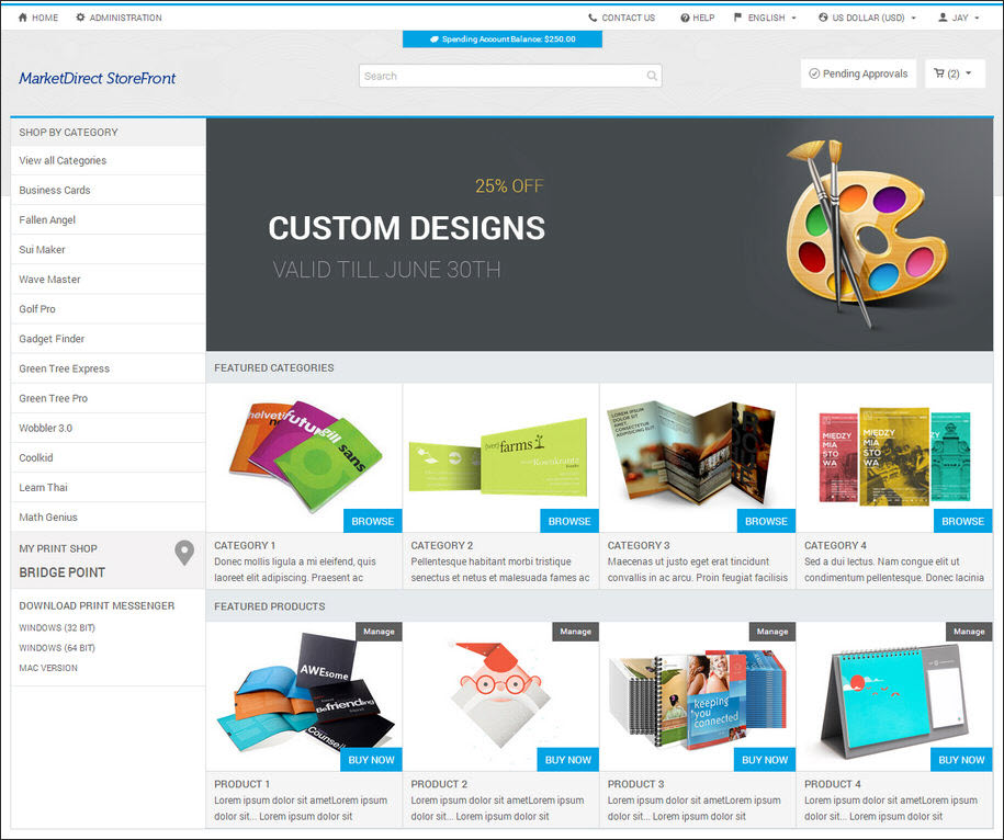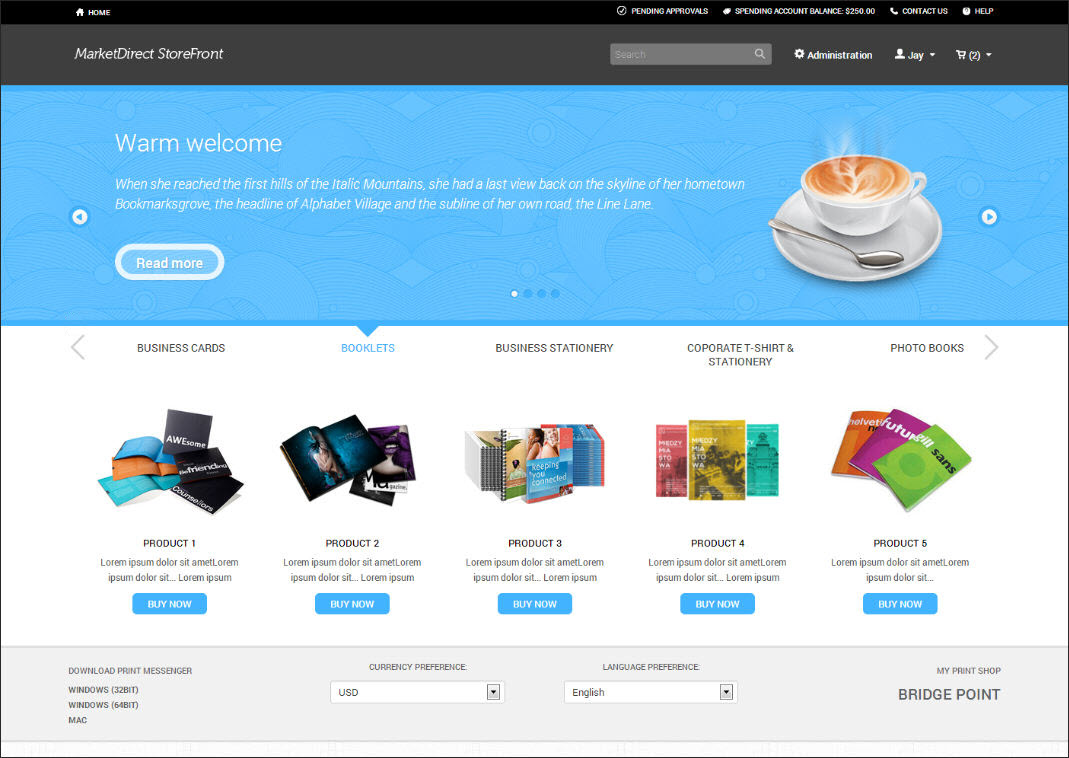 ● Customize a storefront with tailored branding for users associated with a particular company (CSS and/or HTML editing as well as tailoring the messaging, promotional banners, etc.).