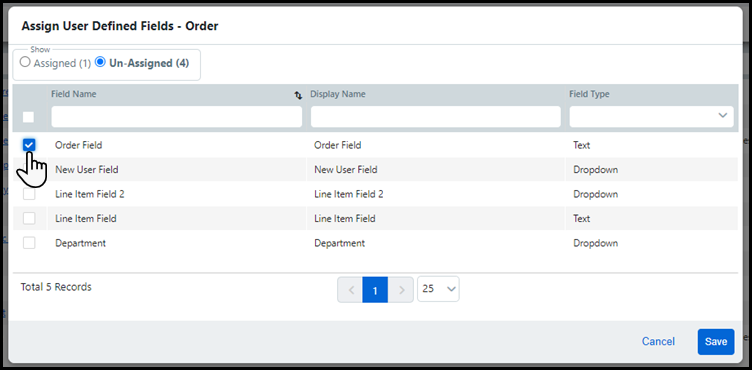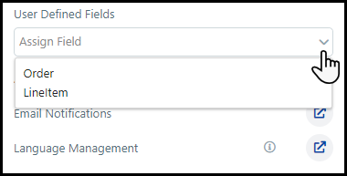 ● Choose to assign the field(s) either to the Order or Line Item from the User Defined Fields drop-down list.
