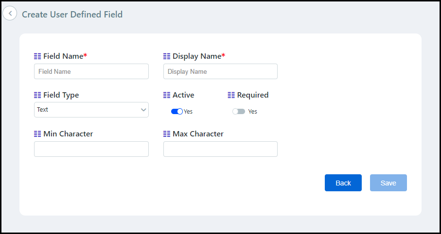 ● Max Character: Enter the maximum amount of characters allowed in a text field.