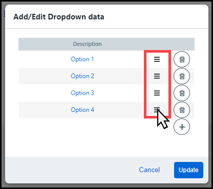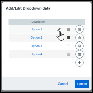 ● Add/Edit Dropdown data: Add, edit, or delete options for a drop-down list.